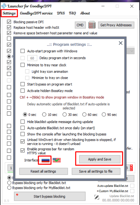 Программа Launcher for GoodbyeDPI для запуска утилиты GoodbyeDPI с понятным интерфейсом от TOPERSOFT.