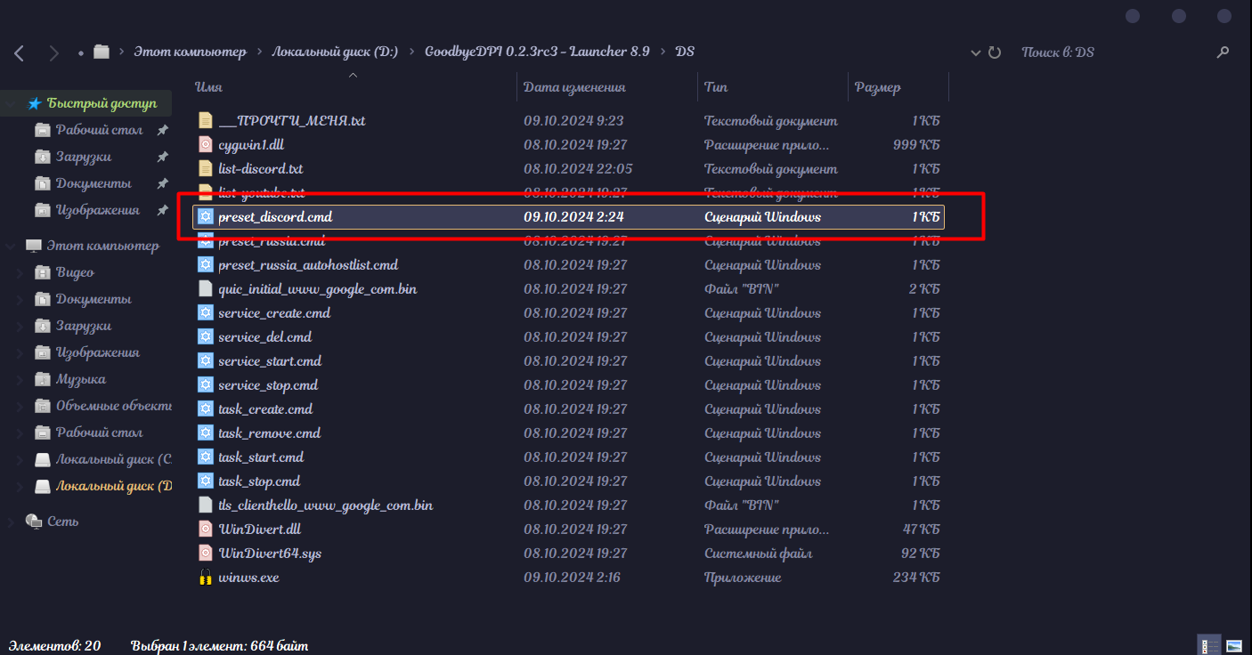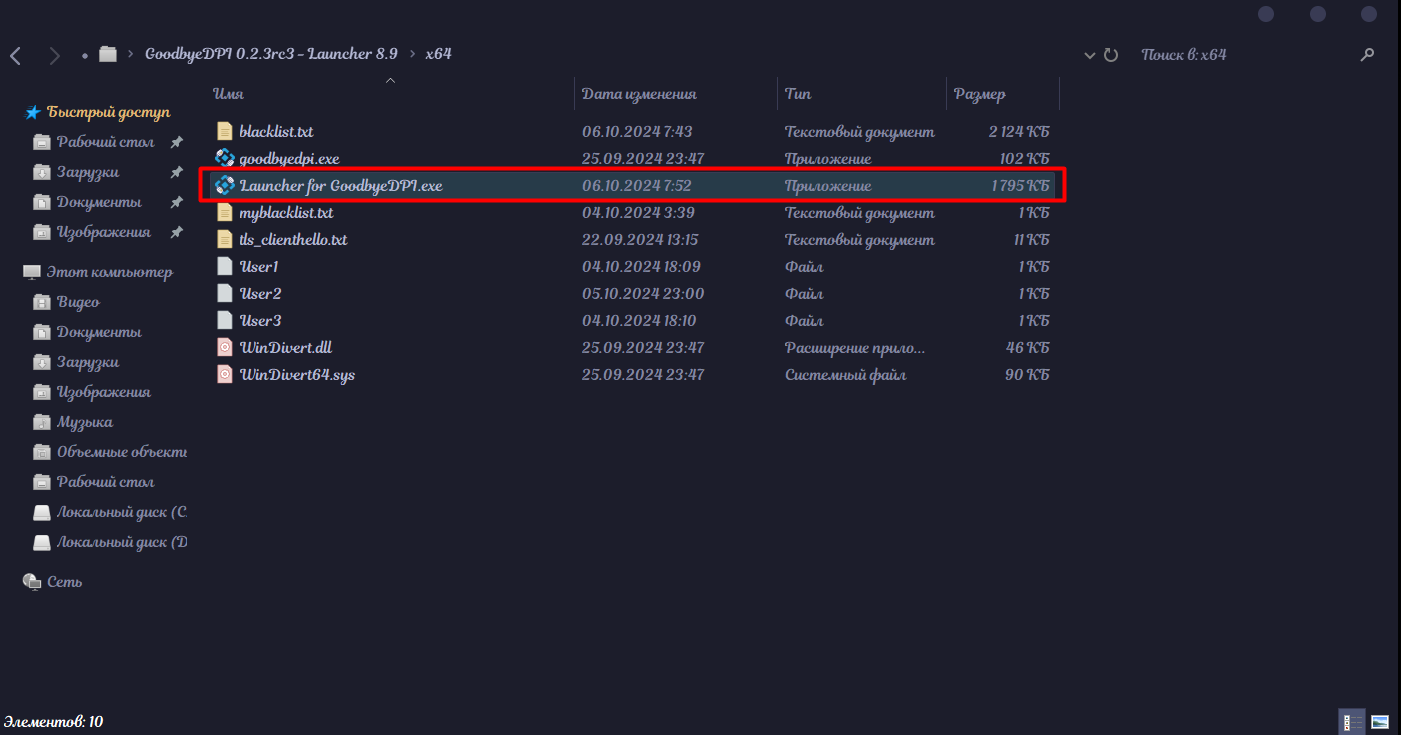 Запускаем файл."Launcher for GoodbyeDPI.exe" Если у вас этого файла нету, то значит, вы не отключили антивирусник.