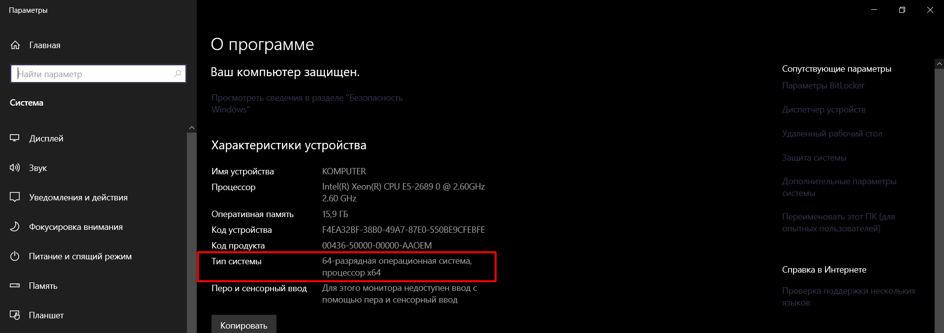 | ТИП СИСТЕМЫ | 32-x 64-х разрядная |